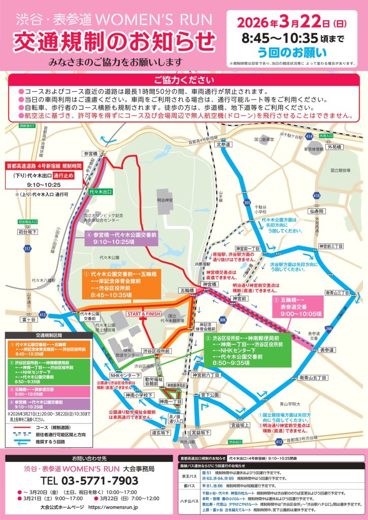 詳しくは、交通規制に準じますので、「渋谷・表参道 WOMEN’S RUN」の公式サイトをご確認ください。